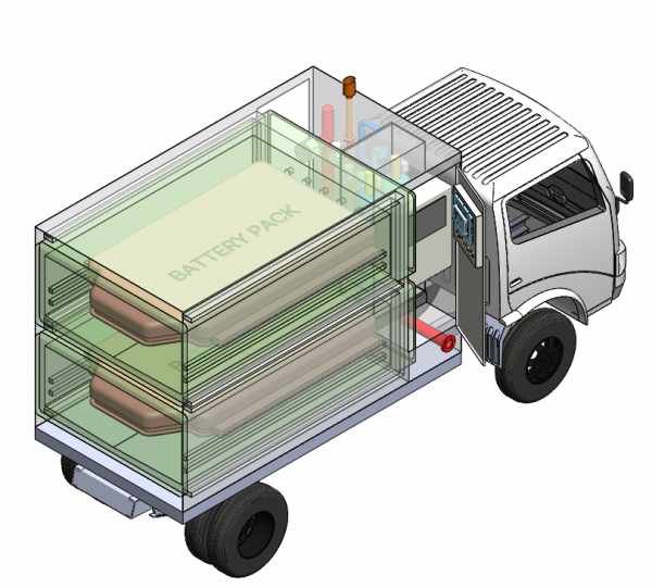 1. 포터 적재함 내에 소화설비 (40.2L 2EA / 용량변경 가능성 있음) 및 소화전과 연결될 수 있는 파이프라인이
